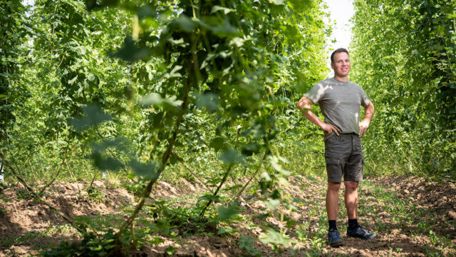 Zum Bierbrauen benötigt man drei Zutaten: Wasser, Malz und Hopfen. Letzteres, auch das Gewürz des Biers genannt, baut Christian Kügel an