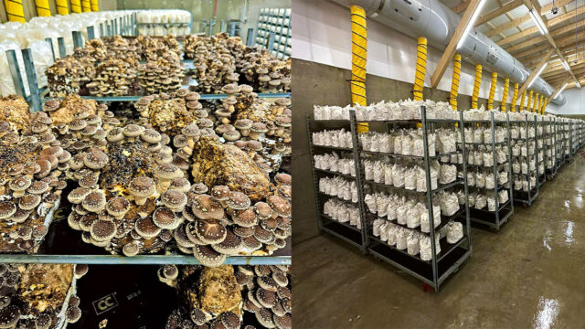 Der Grafthof in Ostfriesland ist ein Paradies für Feinschmecker: In den Gebäuden lagern auf langen Regalflächen jede Menge mit Pilzsporen beimpfte Substratblöcke übereinander, die „Pilzgärten“ von Eckard Janssen. „Der Anbau von Edelpilzen ist eine Wissenschaft für sich“, sagt der Landwirtschaftsmeister lachend. Vorsichtig zieht er einen der strohgefüllten Blöcke nach vorn und zeigt auf einige kleine Pilzansätze, die sich bereits einen Weg durch das Substrat nach außen gebahnt haben. Je nach Pilzsorte dauert der Durchwachsungsprozess zwischen drei Wochen und zwei Monaten. „Sobald die feinen Pilz zellfäden das Substrat durchwachsen haben, werden die Blöcke in den Fruchtkörperraum umgelagert. Neben einer speziellen Befeuchtungs- und Lichtanlage sorgt eine konstante Temperatur von 15 Grad Celsius dafür, dass die Bio-Edelpilze innerhalb von etwa zehn Tagen ihren Fruchtkörper bilden können“, erklärt Eckard Janssen, der seit 2020 auf dem ostfriesischen Grafthof als Pilzanbauer tätig ist.