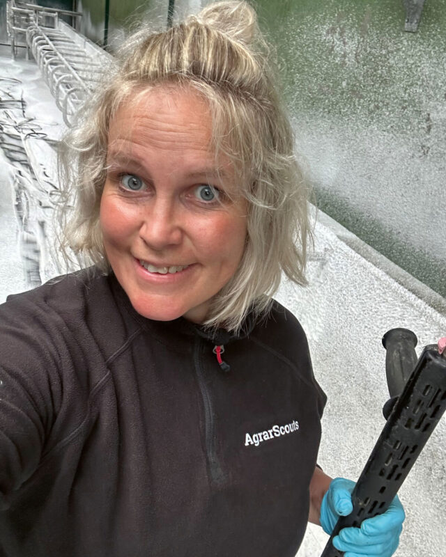 2014 hatten die Vorbesitzer Gebäude wie zum Beispiel das Melkzentrum und den großen Kuhstall neu gebaut. Um das Tierwohl zu erhöhen, entschieden sich die Hofnachfolger, die Anzahl der Tiere zu reduzieren, sodass jede Kuh über eine eigene Liegebox und einen Fressplatz verfügt, auch die jungen Kühe, die ihr erstes Kalb bekommen haben. „Wir führten ein neues Herdenmanagementprogramm ein, das auf künstlicher Intelligenz basiert. Dafür wurde jeder Kuh ein circa zehn Zentimeter kleines Gerät in den Pansen eingesetzt.“ Dieser Sensor bedeutet für das Tier keine Störung. Vielmehr liefert er wichtige Gesundheitsdaten, die per App abrufbar sind. „Von Wiederkauzeiten, Trinkzyklen, Bewegungsaktivität bis hin zur Körpertemperatur oder Wasseraufnahme, das intelligente Programm lernt von den Kühen und erkennt auf diese Weise schon vorab, wenn sich Krankheiten anbahnen, und gibt Warnhinweise“, beschreibt Urte Schulz-Möllgaard die Technologie. Die App auf ihrem Handy zeigt verschiedene Bereiche an, unter anderem Gesundheit, Fütterungsmanagement, Trächtigkeit und Fruchtbarkeit. „Vor jedem Melkdurchgang checke ich diese Gesundheitskacheln von jedem Tier und prüfe, ob es Auffälligkeiten gibt“, sagt die 37-Jährige.